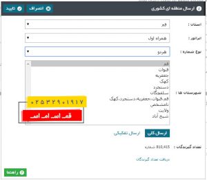 در این بخش شما دسترسی به ارسال تفکیکی نیز دارید که برای یه تعداد مشخص با ردیف مشخص ارسال انجام شود.